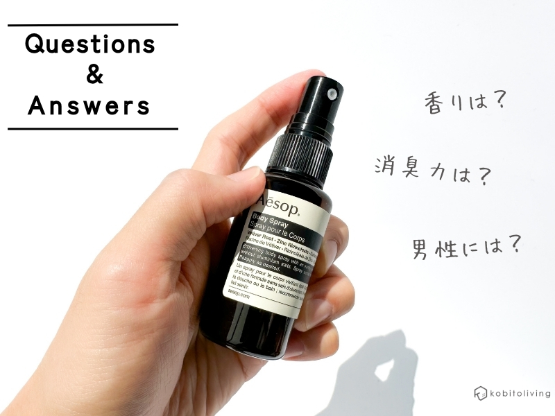 見た目も香りもオシャレだけど、消臭力もしっかりあるイソップのボディスプレー。とてもおすすめなので、ぜひ使ってみてくださいね!