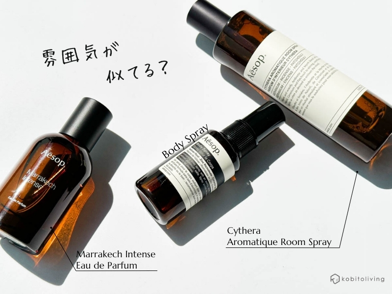 また、ルームスプレーでいえば、イソップの「キティラ」の香りにも似ている感じもします。ゼラニウムとパチュリの香りがまさにそれ!